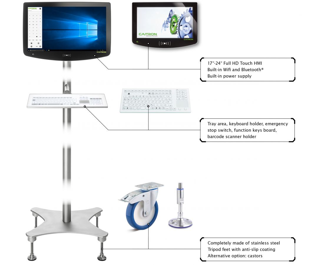 By default, the CAITRON software can be called up with cleaning mode, Numblock and brightness control via the multifunction button. The CAITRON software can be configured completely individually so that exactly the functions that are needed on site can be stored.